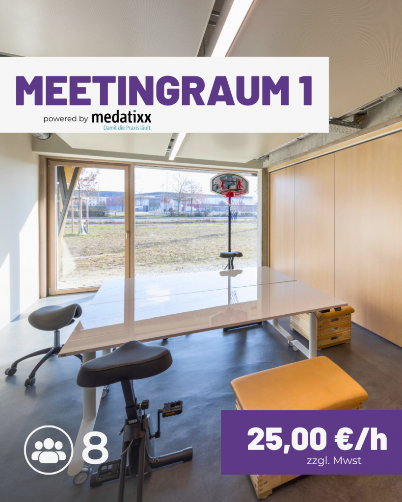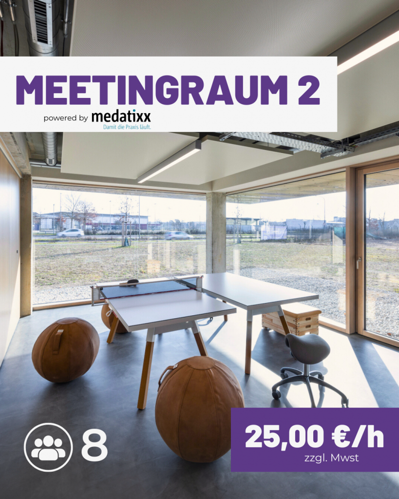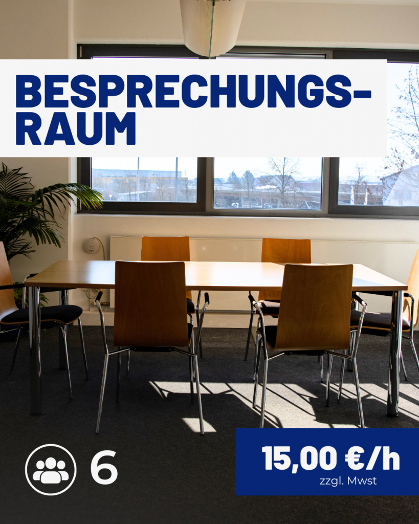 - Besprechungsraum: Ein gemütlicher Raum für kleinere Gruppen oder Teammeetings mit bis zu 6 Personen.