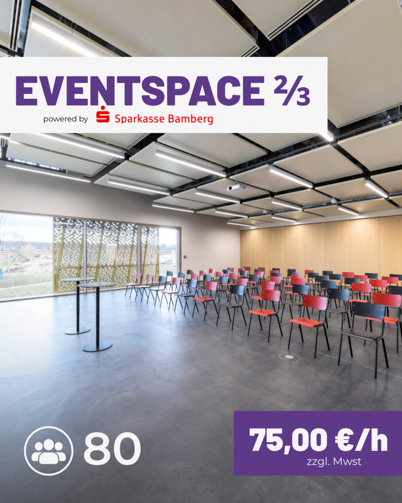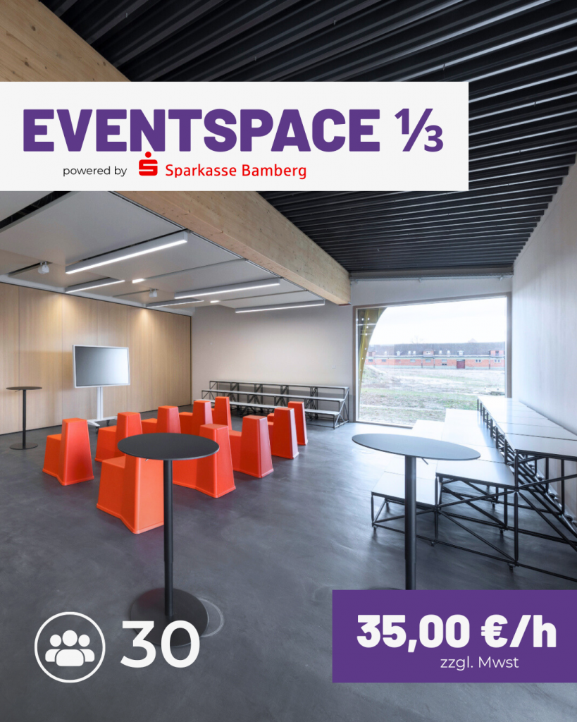 Ob kleines Team-Meeting, intensiver Workshop oder großes Firmenevent: Bei uns findest du die passende Location – modern ausgestattet, flexibel buchbar und direkt in Bamberg.