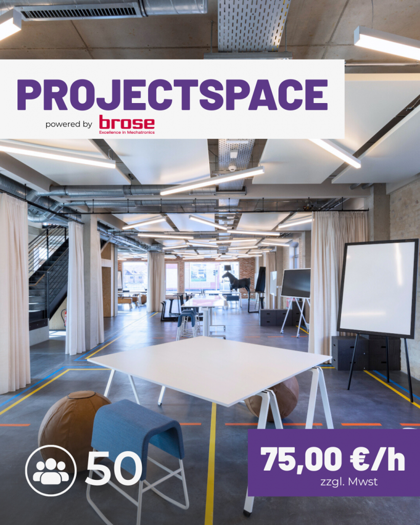 - Eventspace: Ideal für größere Veranstaltungen, Pitches oder Konferenzen. Platz für bis zu 150 Personen mit moderner Technik.