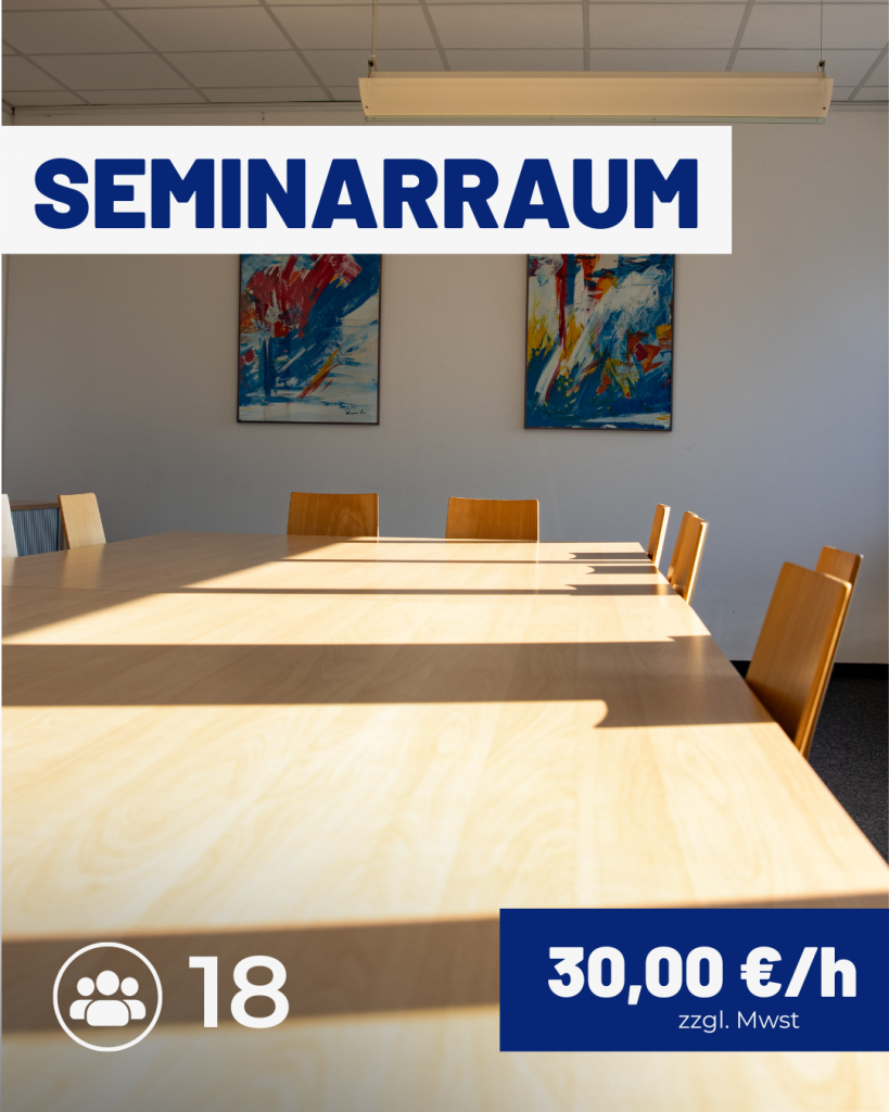 - Seminarraum: Für Besprechungen oder Trainings mit größeren Gruppen.