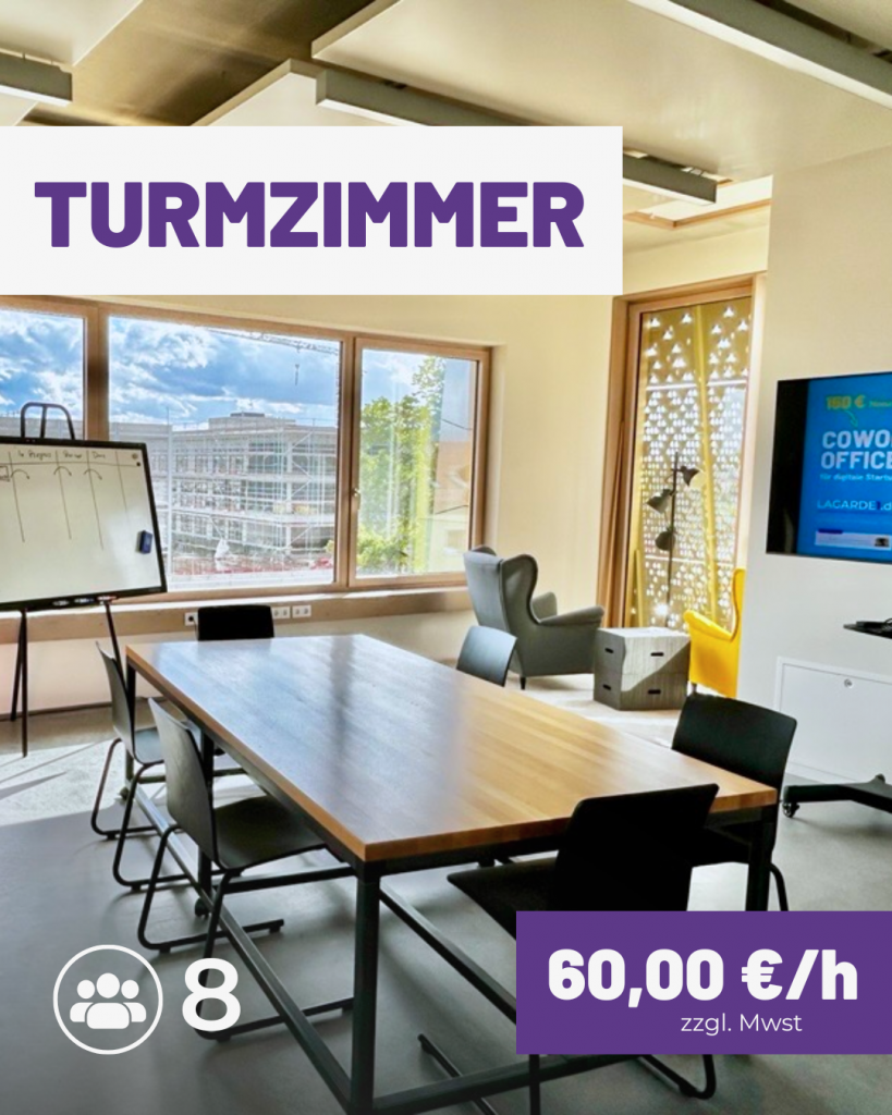 Die Räume im LAGARDE1 und IGZ Bamberg können stundenweise oder tageweise gebucht werden. So bleibst du flexibel und zahlst nur das, was du wirklich brauchst.