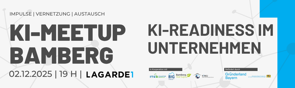 Das „KI-Meetup Bamberg“ vernetzt Menschen miteinander rund um das Thema Künstliche Intelligenz. Ganz gleich, ob Geschäftsidee, Startup, Unternehmen oder Interessierte. Wir bieten die Austauschplattform in der Region für das Thema KI.